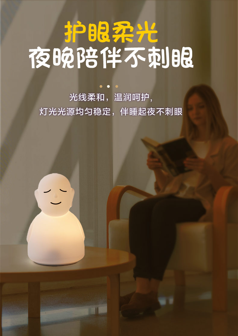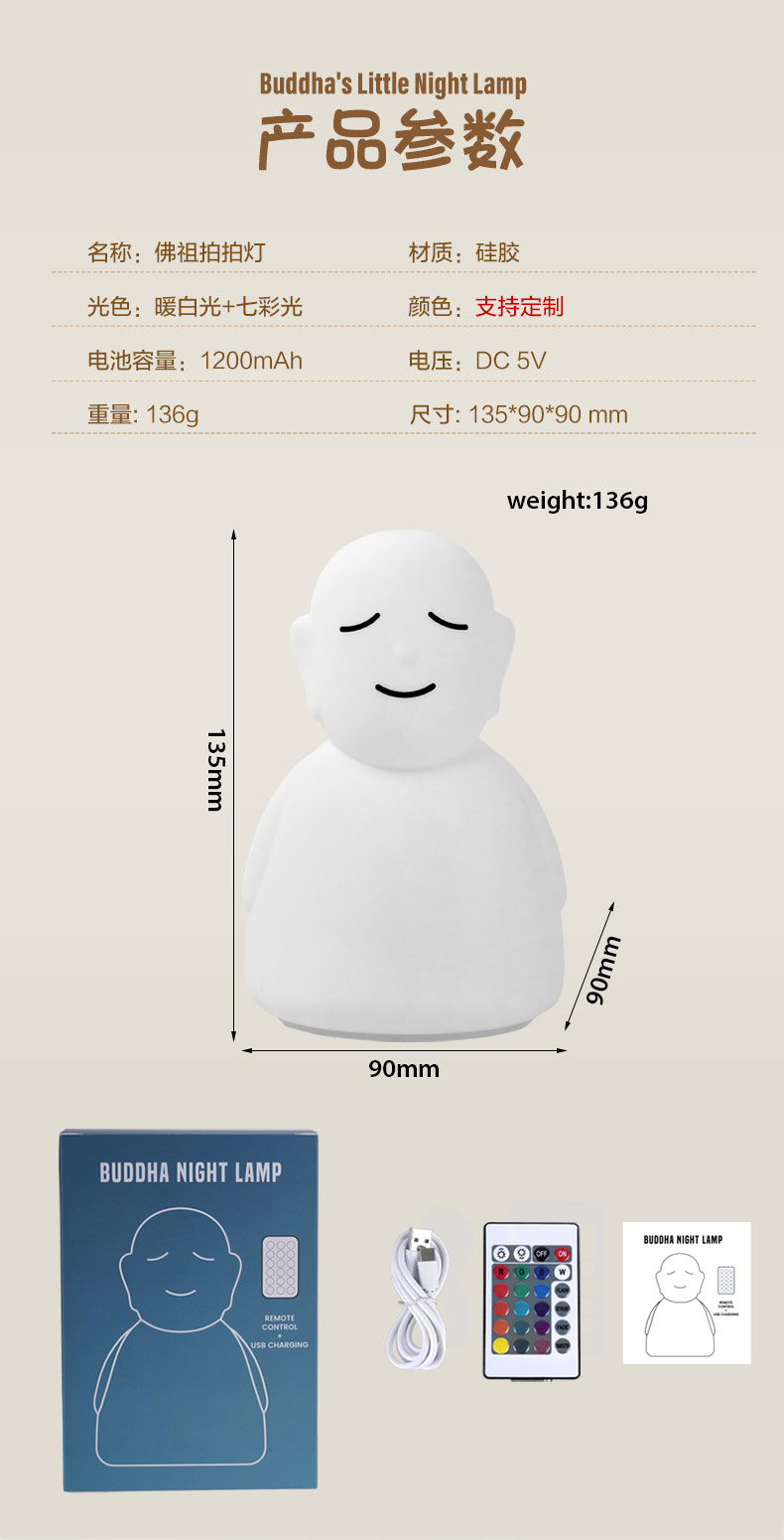 跨境LED硅膠拍拍佛主小夜燈夜間寶寶安撫睡拍拍燈遙控器感應照明